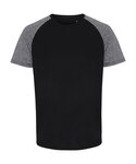 Wicking fabric. Sleeves are melange effect. Stretch. Crew neck. Short sleeve. Lightweight. Twin-needle stitching on hem and arms. We recommend using block out vinyl and inks.Product contains no branded neck or waist label. Removable Kimble or looped garment tags. Inner seam label holds important product information on one label with a second label containing brand information which can be cut-away.