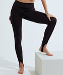 Full-length leggings. Soft-stretch fabric. Self-fabric waistband. Seam detail through centre. Elasticated stirrup design to feet. The product contains no branded neck or waist label. Removable kimble or looped garment tags. The inner seam label holds important product information on one label with a second label containing brand information which can be cut-away. We recommend using block out vinyl and inks.